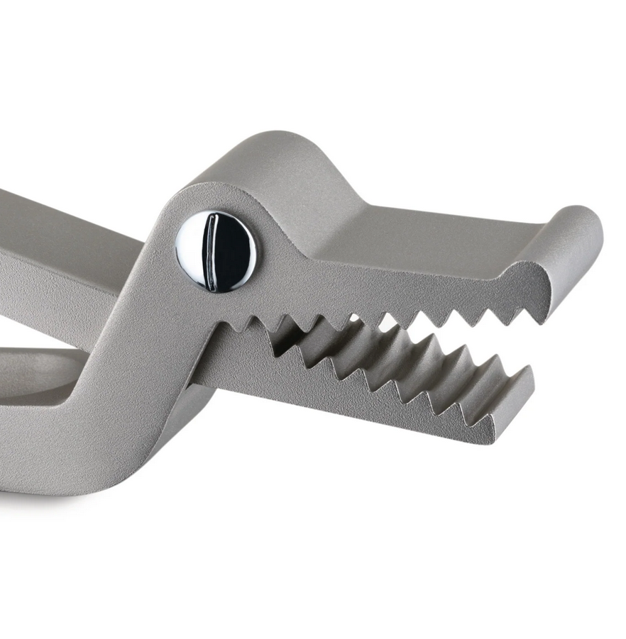 La partie avant est dentelée pour écraser les petits écrous ; la structure interne concave maintient la coquille.